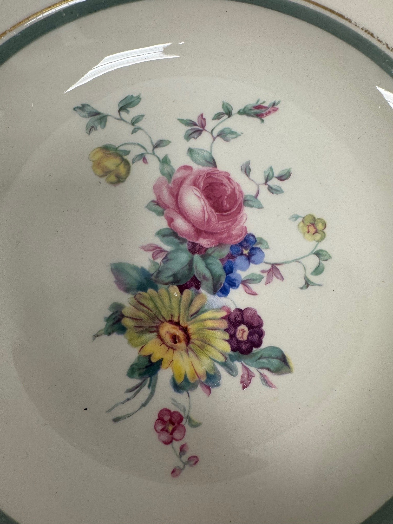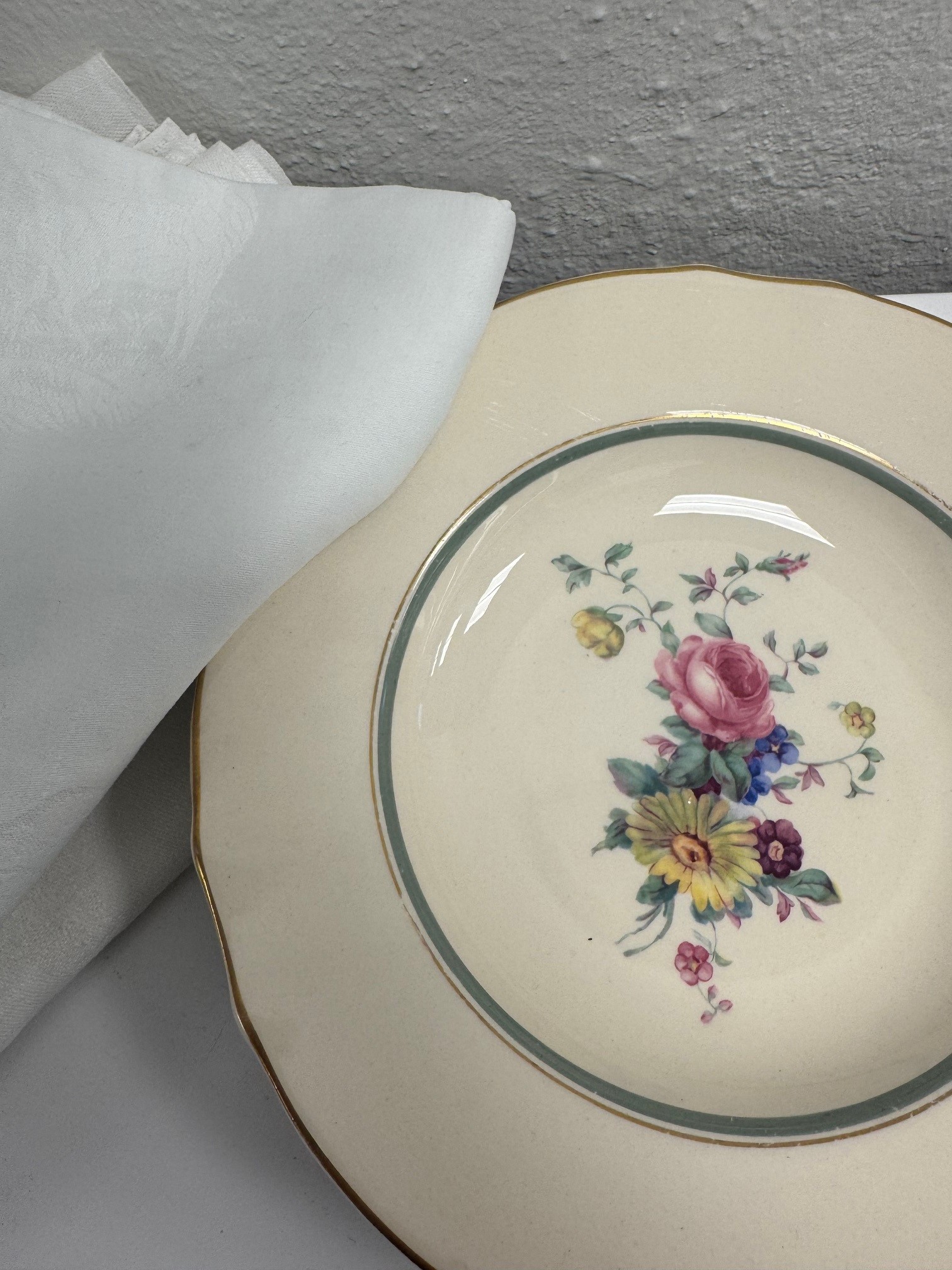 Tallerkenerne har motiv af de smukkeste blomster på crenefarvet bund