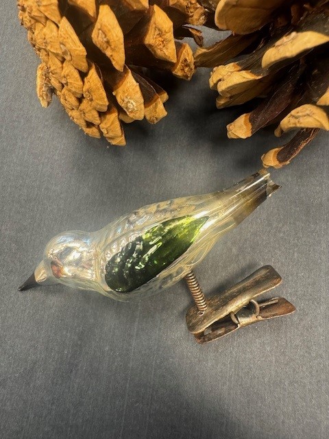 Smuk gammel julefugl, med grønne vinger.