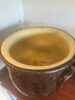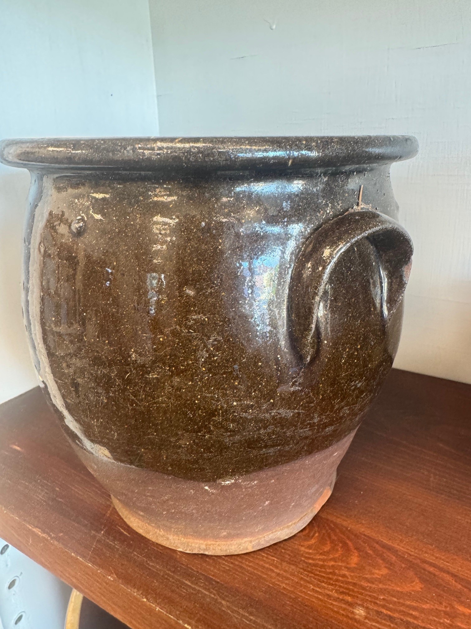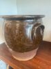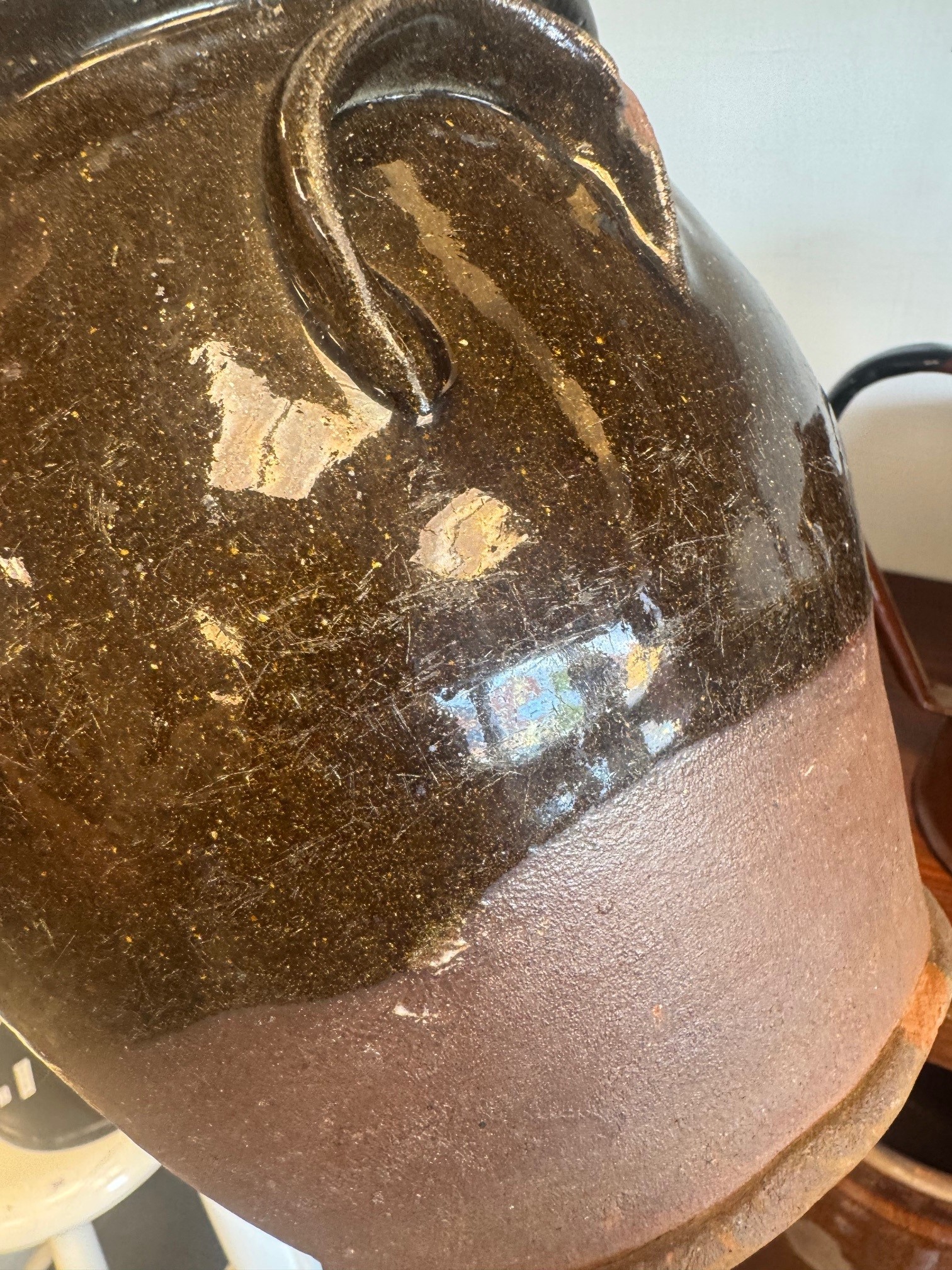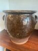 Krukken er glaseret i en smuk brun farve. Nederst er krukken uglaseret.