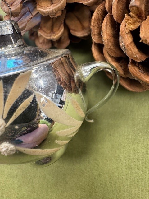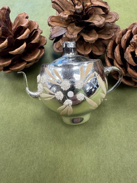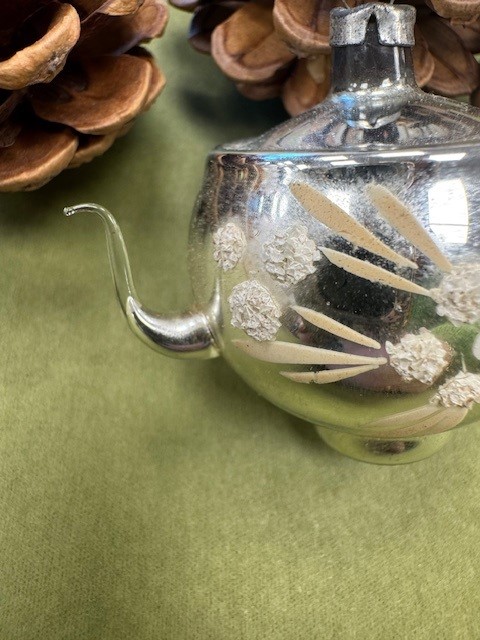 Her er en af de smukke, gamle tekander til juletræet.