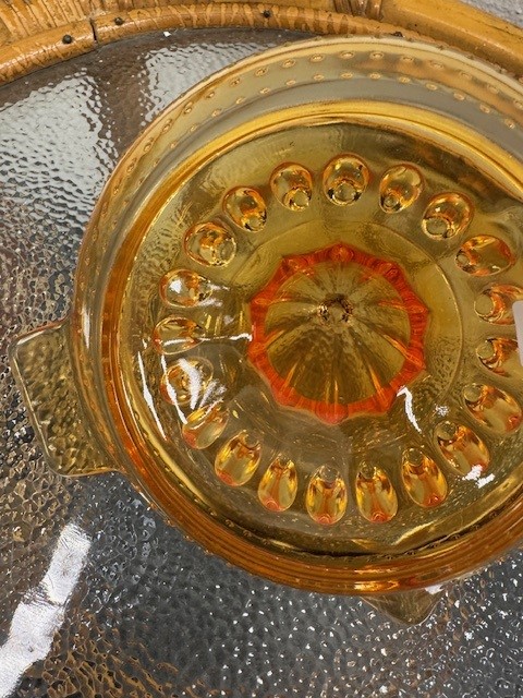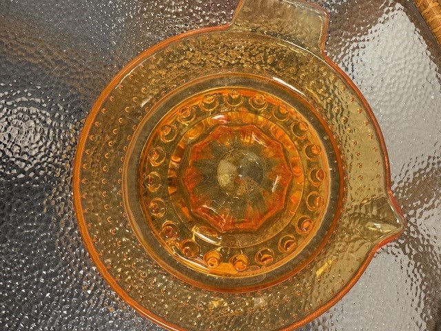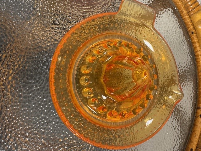 En af de skønne gamle citruspressere i smukt orange glas.