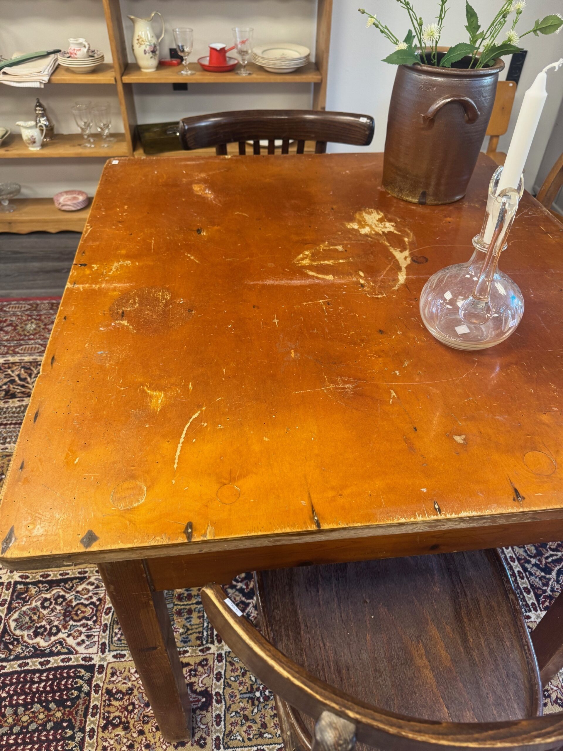 Bordpladen er rustik med en fantastisk glød. De fire ben er lige og enkle.